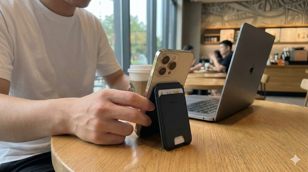 財布という持ち物を廃止するために、俺が導入したのが「UGREEN MagSafe対応 カードケーススタンド」だ。